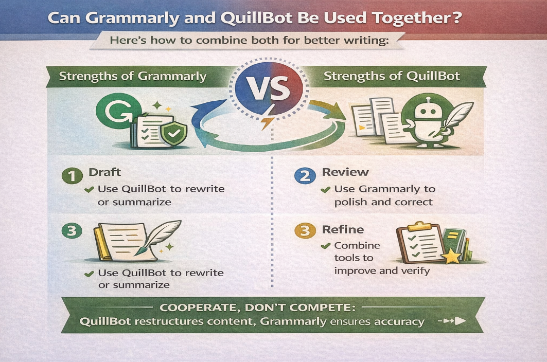Rather than replacing each other, these tools address different stages of the writing process. Many users achieve the best results by combining both; using QuillBot for restructuring and Grammarly for final refinement and credibility.